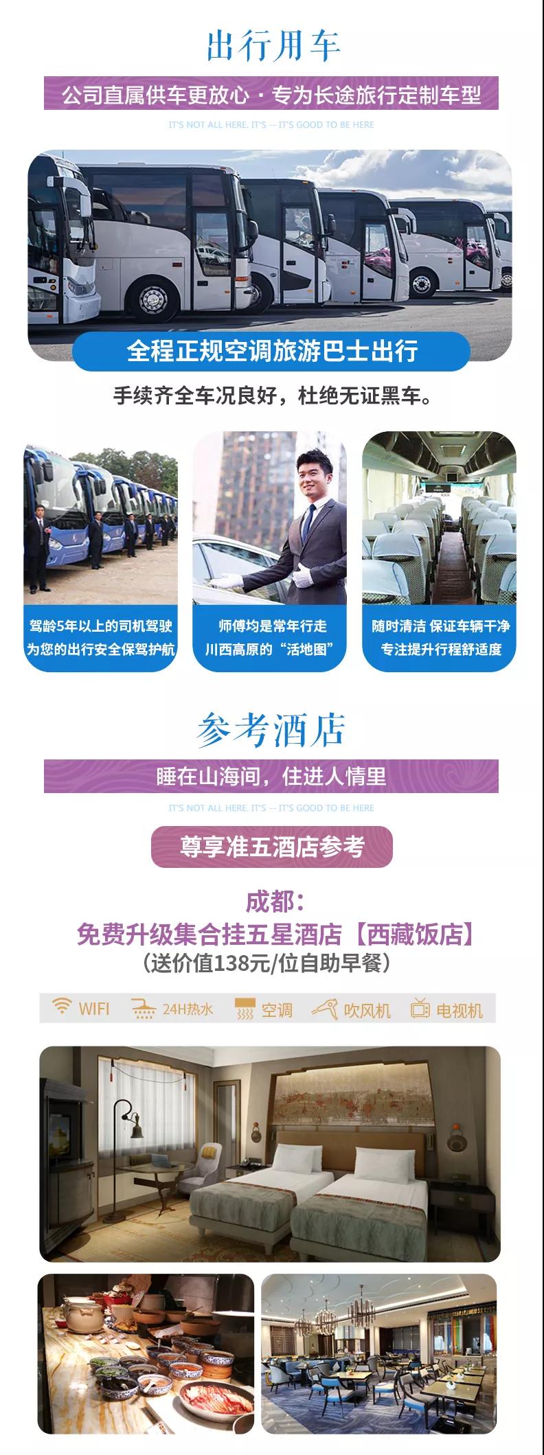 尊享準(zhǔn)五:嘉利尚雅、龍欽云頂、旭日仙閣、阿吾倉(cāng)、川主國(guó)際或同級(jí)酒店。