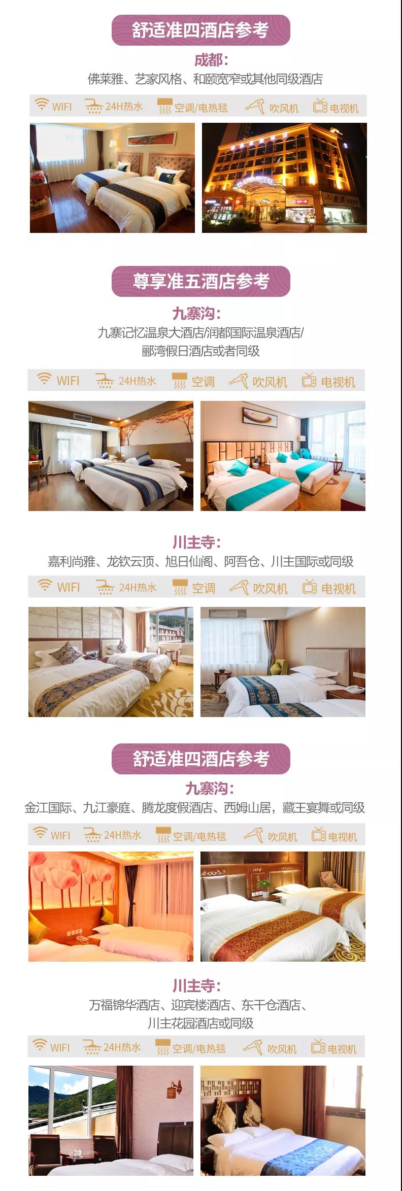 尊享準(zhǔn)五:九寨記憶溫泉大酒店,潤(rùn)都國(guó)際溫泉酒店,酈灣假日酒店或者同級(jí)酒店。