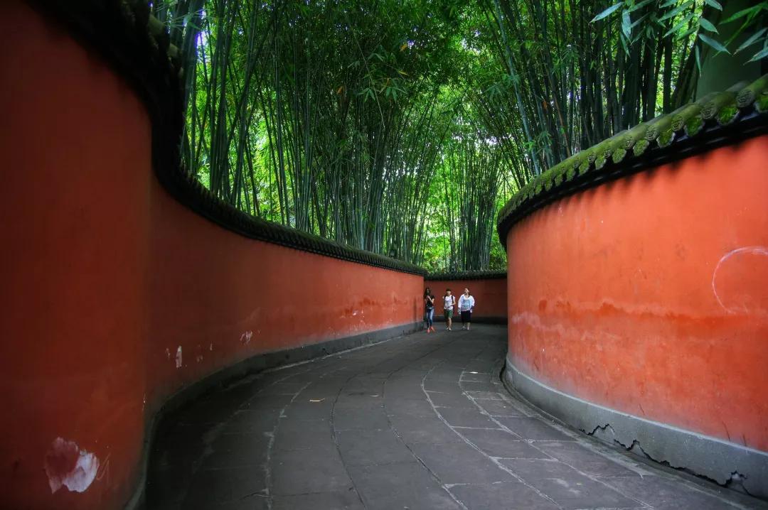 用過午餐后我們前往全世界影響最大的三國(guó)遺跡博物館——【武侯祠】(漢昭烈廟),它是中國(guó)唯一的一座君臣合祀祠廟和最負(fù)盛名的諸葛亮、劉備及蜀漢英雄紀(jì)念地。規(guī)模宏大的武侯祠里廣植松柏竹木,寧?kù)o肅然,其中又以一道網(wǎng)紅的景色“紅墻竹影”最為人稱道,紅墻夾道蜿蜒延伸而去,兩旁青竹蔥蘢,陽(yáng)光下竹影疏疏,斑駁映畫紅墻之上,走在這里趁人少的時(shí)候立馬按下快門,直出大片。