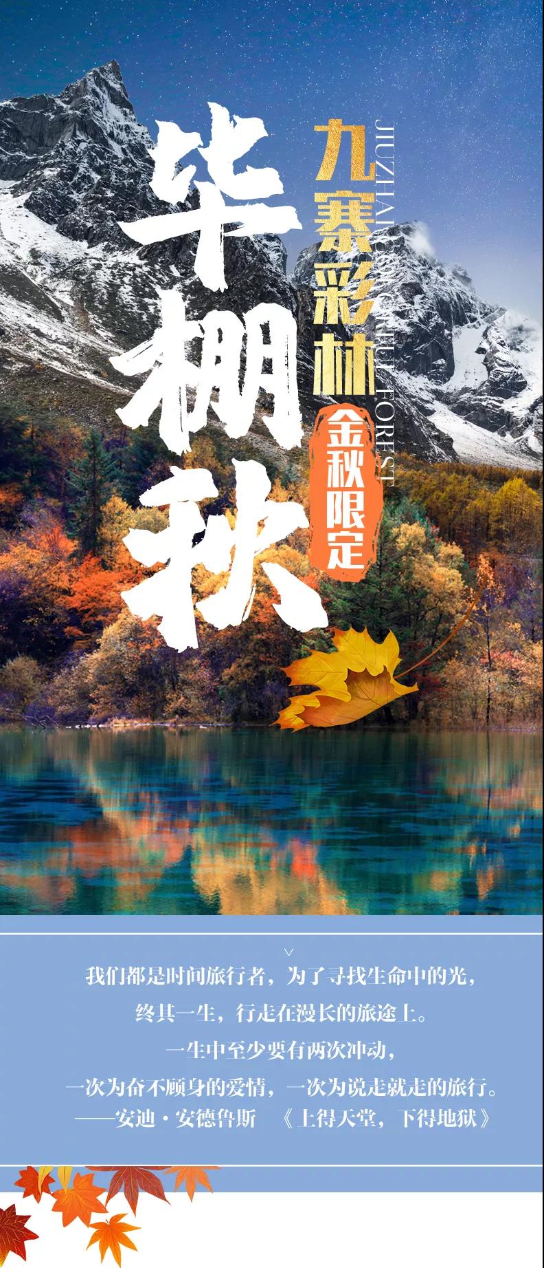 (1)服裝:九寨溝秋季平均氣溫在15℃以下,且沿途高原地區(qū)晝夜溫差很大,早、晚氣溫偏低,要注意晚上防寒保暖,建議準(zhǔn)備防風(fēng)的外套、沖鋒衣、防寒羽絨服。