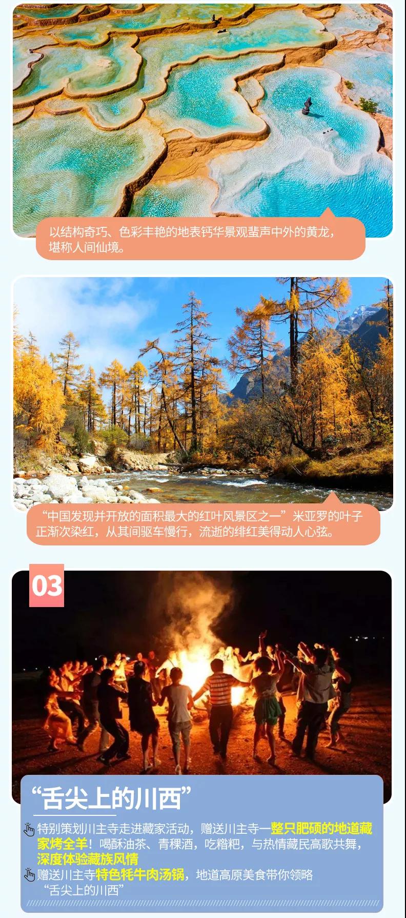含全程九寨溝門票、黃龍風(fēng)景區(qū)門票、畢棚溝門票。