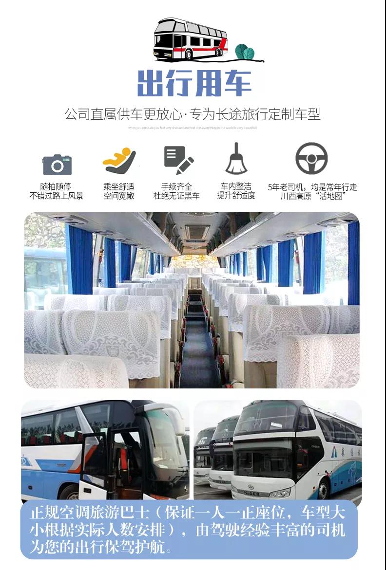 全程正規(guī)空調(diào)旅游車出行(保證一人一正座位,車型大小根據(jù)實(shí)際人數(shù)安排)