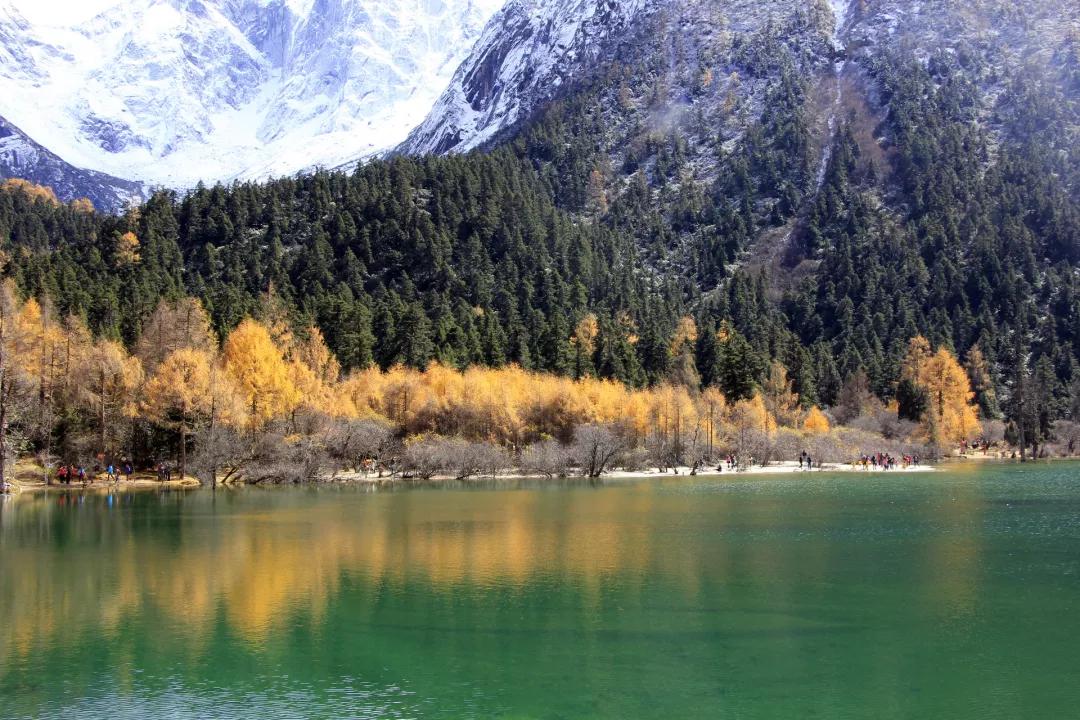 然后我們抵達(dá)被譽(yù)為“四季山水,山水世界”的旅游圣地——【畢棚溝】。秋天是畢棚溝景色最有層次的時(shí)候,遠(yuǎn)眺藍(lán)天山尖已戴白帽,山腰處卻還斑駁著枯黃與灰綠,濃綠的樹、深紅的葉、青青的湖、湛藍(lán)的天,此時(shí)的畢棚溝真正當(dāng)?shù)蒙弦粋€(gè)“五彩斑斕”。沿兩旁塞滿了楓樹、槭樹、鵝掌松、落葉松的小路踱步,遠(yuǎn)瞻奇特的萬年冰川,看奔騰不息的瀑布懸飛而下。這是離成都最近的最美秋色,畢棚溝金秋的層林盡染會(huì)告訴你,這一切都值得。