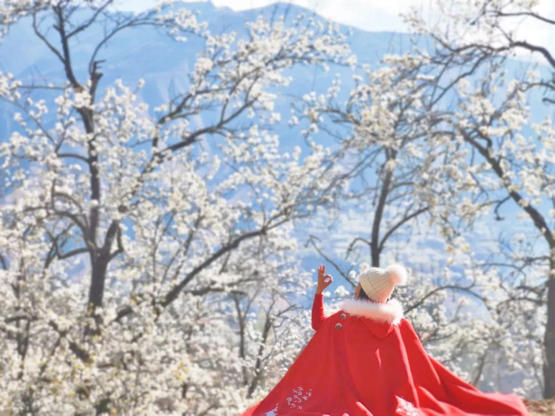 我們的團期是金川最好的時節(jié),萬物復蘇的初春三月,正值金川成千上萬棵梨樹花期,雪白色的梨花競相開放,一片片、一層層的鋪散開來,漫山遍野的白色花海中夾雜零星新綠。沿著美人谷高原萬畝雪梨花盛開的壯景,登上金川著名景點——神仙包,將這鋪滿整個世界的純白花海和繚繞其間的青霧盡收眼底??諝庵须硽柚婊ㄇ逑?,眼是天堂,身亦是天堂。