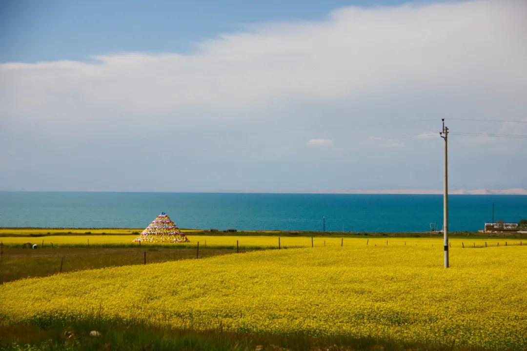然后我們前往有“西海”、“仙?!敝Q的青海湖。我們特別安排晚上就睡在青海湖畔,能品到一場(chǎng)仙海日落的美景盛宴,與湖風(fēng)星河作伴入夢(mèng)。待日落時(shí)分,向西望,一團(tuán)赤球漸漸向湖面落去,將蔚藍(lán)的天燒出一方火紅晚霞,然后墜入溫柔冷清的青海湖,“落霞與孤鶩齊飛,秋水共長(zhǎng)天一色”便是對(duì)此情此景最好的寫照,這湖水寬闊得將天地融化,將日月融化,將一切融化,融化在那滟滟湖波中。