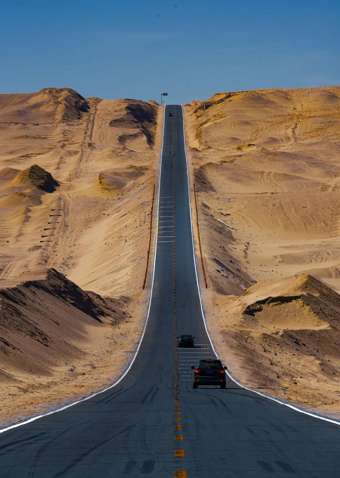 車子繼續(xù)向前行進(jìn),我們來(lái)到不遠(yuǎn)處的沿著G315戈壁天路駛向大柴旦,一眼望不到盡頭筆直的數(shù)百公里公路,無(wú)需刻意挑選就是一派好萊塢大片風(fēng)景,野性的路野性的起伏野性的自己,在這條路上你可以盡情感受公路旅行的自由。