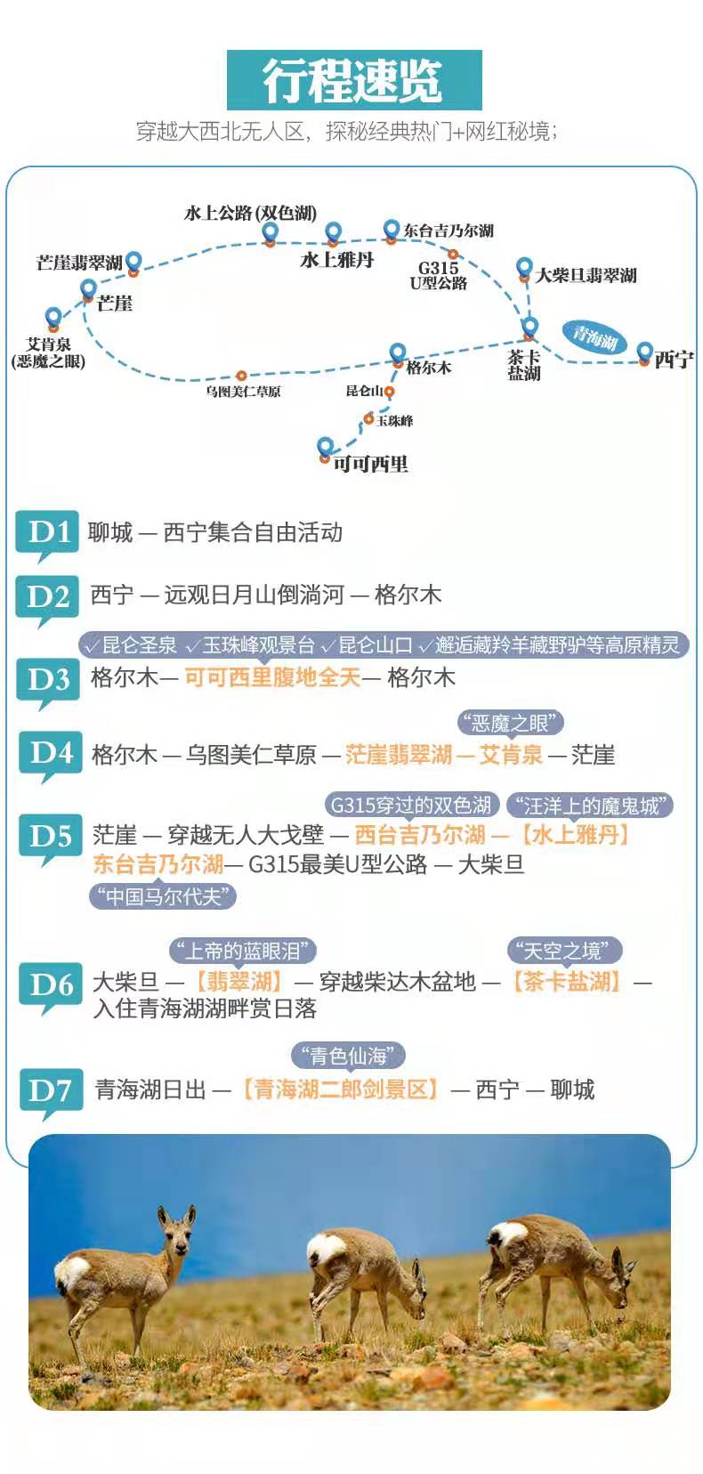 格爾木 — 可可西里腹地全天(昆侖圣泉、玉珠峰觀景臺(tái)、昆侖山口、邂逅藏羚羊藏野驢等高原精靈)— 格爾木