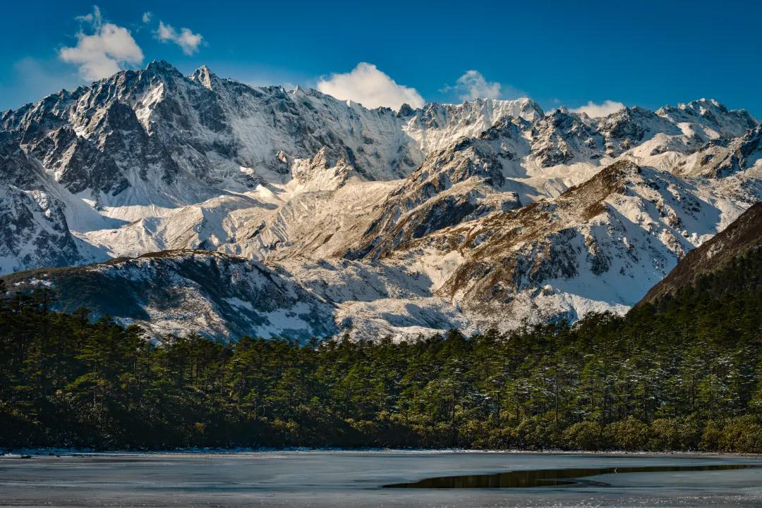 抵達(dá)【扎罐崩】后徒步上山直接抵達(dá)沖古寺,觀賞沖古寺風(fēng)光及神山【仙乃日】,朝拜【卓瑪拉錯(cuò)神湖】,即珍珠海。珍珠海是仙乃日的融雪形成的海子,面積約0.1平方公里,密林中的珍珠海如一顆鑲嵌在蓮花寶座上的綠寶石,碧波蕩漾,粼粼波光中透出無限清麗,湖畔四周,林木搖曳。冬天湖邊林子灌木叢漸次經(jīng)霜,寂寥而冷峻,珍珠海更顯清冽,如一面鏡子倒映著白雪皚皚的仙乃日,鏡花水月,似真似幻。游覽結(jié)束后原路返回,乘坐觀光車離開景區(qū)集合。