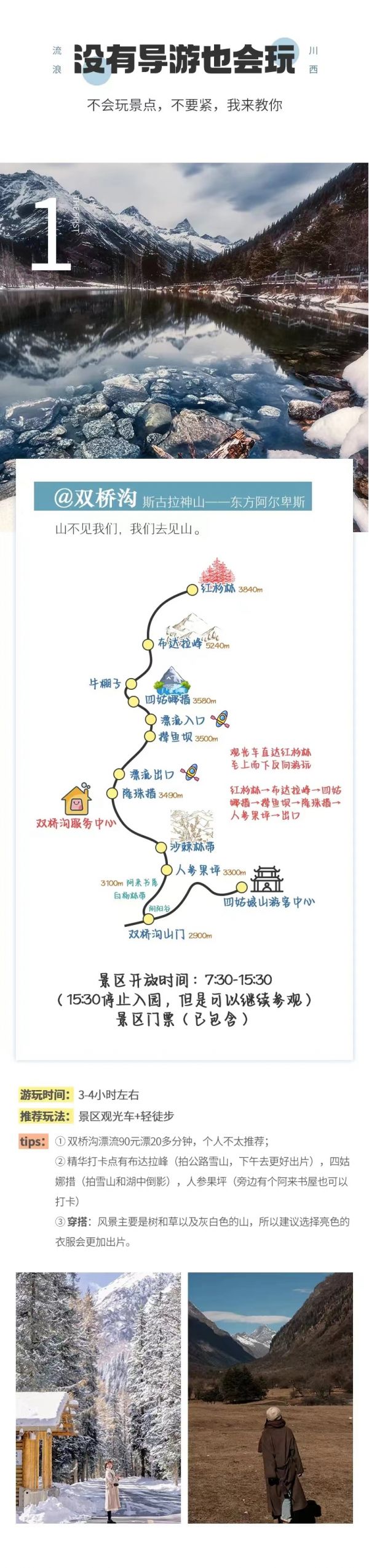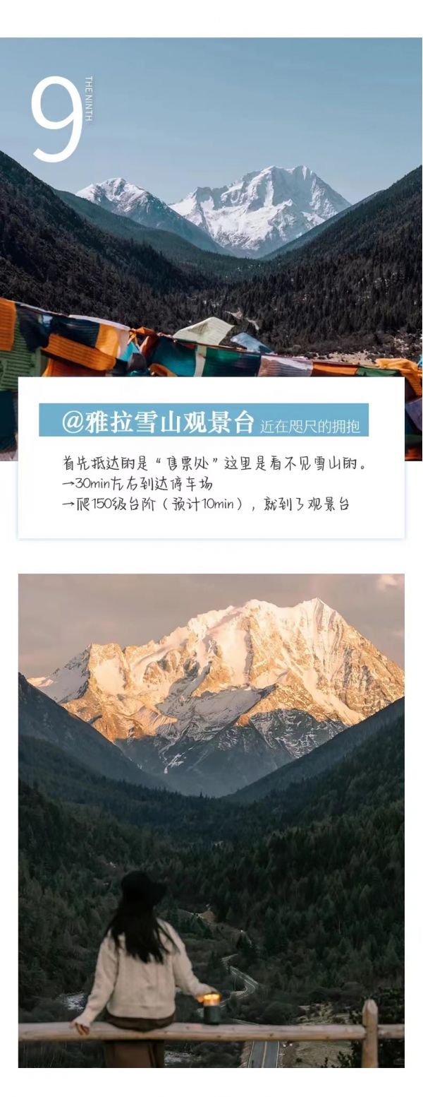 紅海子+魚(yú)子西+月亮湖+冷嘎措+墨石公園+雅拉雪山觀景臺(tái)+甲居藏寨+四姑娘山+雙橋溝?