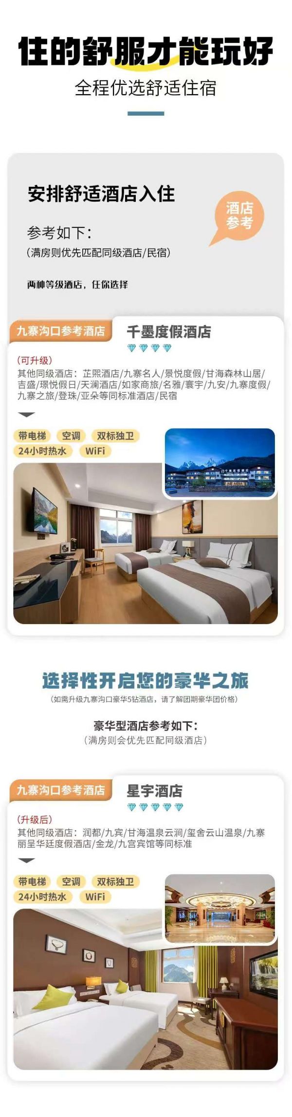 包含旅游意外險(不含財產(chǎn)險);包含仙境九寨旅拍(精修旅拍電子照3張+底片全送);