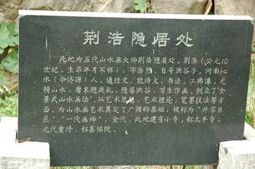 荊浩中國(guó)山水畫藝術(shù)的開(kāi)山式人物,公元一千二百多年前的晚唐五代時(shí)期,隱居于洪谷山,自號(hào)洪谷子,開(kāi)創(chuàng)以描繪高山峻嶺為特色的北方山水畫派。荊浩的畫風(fēng)后來(lái)由關(guān)仝、李成和范寬繼承,演變成開(kāi)圖千里的“巨碑式”山水,荊浩成立中國(guó)山水畫鼻祖,洪谷山成為中國(guó)山水畫發(fā)源地。