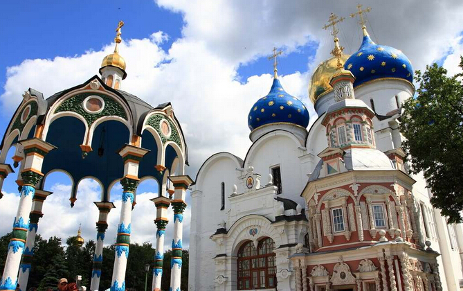 今天部分拍攝點(diǎn)包括謝鎮(zhèn)民風(fēng)特色,修道院建筑精華及藝術(shù)杰作。【圣三一修道院】*(內(nèi)觀,約1.5小時(shí))是東正教最古老的教堂建筑群之一,里面有許多著名的俄羅斯建筑古跡。其中最古老的是三位一體教堂,里面安放著謝爾蓋院長(zhǎng)的棺木。周?chē)渲レ`降臨教堂、圣母升天教堂、圣謝爾蓋教堂、左希姆和薩瓦提等教堂。它的建筑精華包括:用白色半寶石砌成的圓頂、黃金雕成的壁上橫木、由魯伯里歐夫所繪圣像裝飾而成的圣像門(mén)等,都是令人贊嘆的藝術(shù)杰作。以畫(huà)《三位一體》而出名的俄羅斯畫(huà)家安德烈·魯布廖夫的壁畫(huà)作品一度收藏在教堂中,現(xiàn)在則收藏于莫斯科的特列基亞科夫畫(huà)廊。午餐特別安排品嘗特色俄餐,稍后入住賓館。下午客人可以自由活動(dòng),體驗(yàn)小鎮(zhèn)的民風(fēng)特色,感受無(wú)邊的美景。