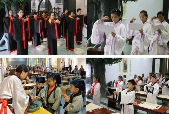“獨(dú)家特色開筆禮、拜師禮、成人禮,將使孩子把上學(xué)求知看成一個(gè)神圣的使命,培養(yǎng)孩子對(duì)傳統(tǒng)文化的神圣感情,對(duì)前輩、師長(zhǎng)常抱謙恭之心,為孩子的良好成長(zhǎng)奠定堅(jiān)實(shí)基礎(chǔ)。