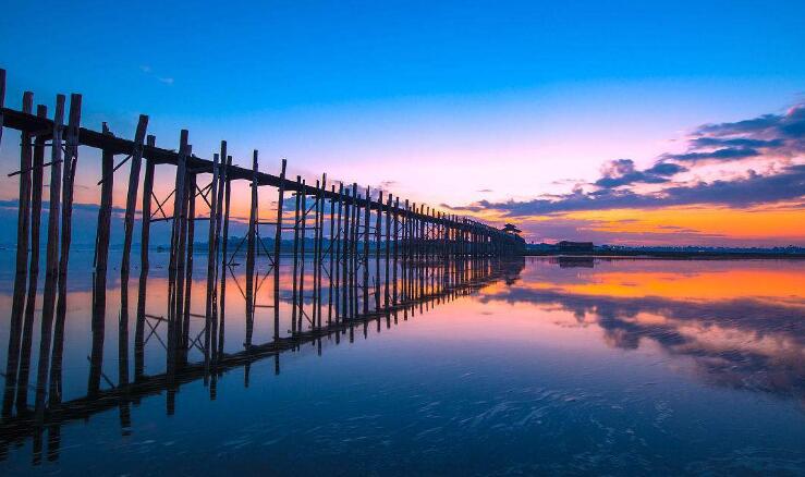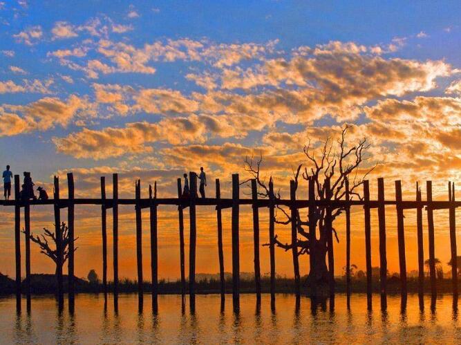飯店內(nèi)早餐后,乘車前往曼德勒市西南郊的【烏本橋】,此橋全長2千余米,全部由柚木建成,又稱“情人橋”,至今已有2百多年的歷史;橋上當(dāng)?shù)匦腥撕图t衣僧侶悠閑往來,小販攤商兜售特產(chǎn),奶茶館掩映在古樹如傘的巨大樹冠之下,平和中又充滿生活的情趣。參觀在其面前前往橫跨大河的“情人橋”,全橋總長1200公尺,全部由柚木建成,又稱柚木橋。參觀緬甸特產(chǎn)【翡翠玉】。乘機(jī)前往黑河。抵達(dá)后,乘車前往艷麗湖。抵達(dá)湖邊的娘惹鎮(zhèn)后,換乘當(dāng)?shù)靥厣男〈?,前往建于水邊的木屋酒店。入住后,用晚餐,并欣賞當(dāng)?shù)亍?strong>民族歌舞表演】。