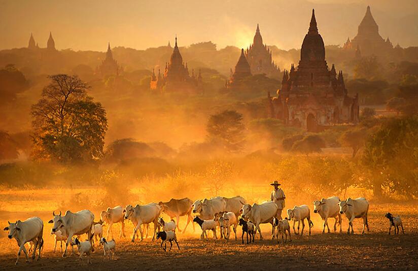 飯店內(nèi)早餐后,前往國內(nèi)機(jī)場(chǎng),乘機(jī)飛蒲甘,大約1小時(shí)航程。古都蒲甘位于伊洛瓦底江畔,蒲甘佛塔群始建于十至十三世紀(jì)之間,非常具有藝術(shù)及考古價(jià)值。首先我們參觀蒲甘地區(qū)最古老的佛塔—【瑞喜貢塔】,之后參觀蒲甘最美的佛塔—【阿南達(dá)塔】,此塔在蒲甘眾多佛塔當(dāng)中色彩最豐富,建筑形制也最富于變化,塔內(nèi)四周供奉著四尊莊嚴(yán)祥和的佛主神像;接著參觀蒲甘最高的佛塔—【大冰瑜塔】,此塔有神廟之譽(yù)。下午參觀參觀蒲甘著名的手工藝品—【漆器】的制作,及精美的【柚木】雕刻品。傍晚登上靠近伊洛瓦底江邊的【日落塔】,欣賞色彩艷麗豐富的【蒲甘日落】美景。