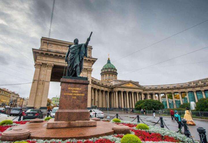 【喀山大教堂】(外觀約10分鐘)俄羅斯第一座由俄羅斯建筑師修建的歐洲風(fēng)格的教堂,也是圣彼得堡最靈驗的東正教教堂。半圓型的柱廊由94根圓柱組成,面向大街,環(huán)抱廣場。柱廊前面矗立著俄軍統(tǒng)帥庫圖佐夫紀(jì)念碑和俄國陸軍元帥紀(jì)念碑。教堂里有庫圖佐夫墓和1812年打敗拿破侖的勝利品。喀山圣母像曾經(jīng)多次顯靈。第一次顯靈于伊凡雷帝時期。