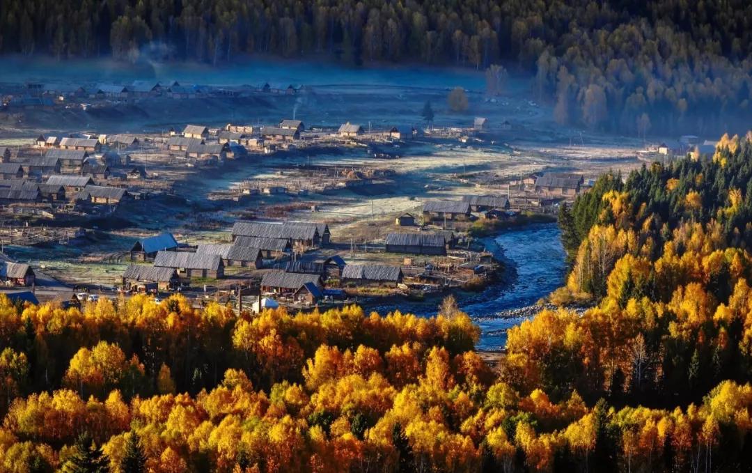 若問秋季的北疆哪里的色彩最為濃郁,這必然是禾木。每當(dāng)秋風(fēng)拂過,禾木就像被人拿著畫筆涂上了金黃色的顏料一般,道路、叢林、山坡,就連湖泊也都被染上了金色,好不壯觀。
