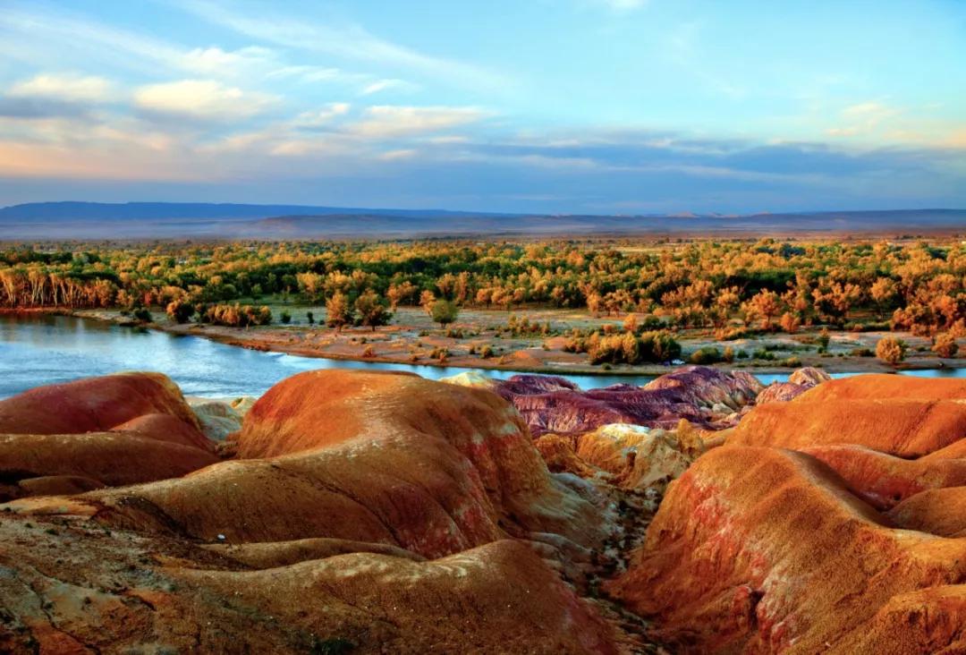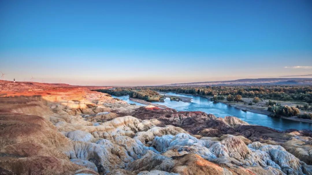 許多去過新疆的朋友應(yīng)該對它的夕陽有著極深的印象,晚上七八點(diǎn)太陽才下山實(shí)在太常見了。在阿勒泰,夕陽有一個絕佳的“落日伴侶”,那就是五彩灘。