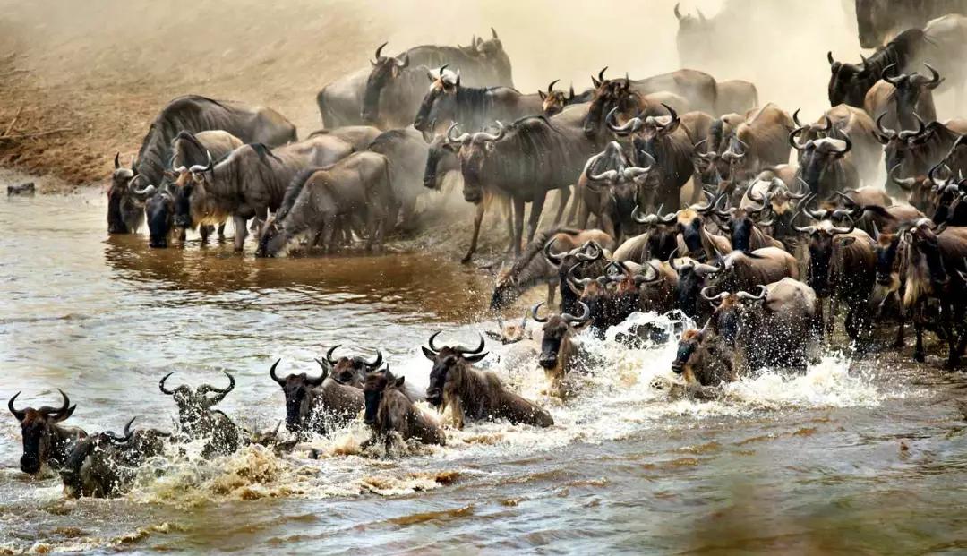 每年7月至8月將迎來角馬大遷徙,數(shù)百萬只角馬長(zhǎng)途跋涉尋找新的牧場(chǎng)。百萬角馬穿越大草原,浩浩蕩蕩壯觀的場(chǎng)面。即便前方有獅子、獵豹、鱷魚的伏擊,即便前方有湍急的河流阻礙,即便伙伴雜沓的腳步足以致命,角馬們依然義無返顧、勇往,聚眾涉水遷徙。這是這個(gè)地球上最悲壯、最血腥的動(dòng)物大遷徙……