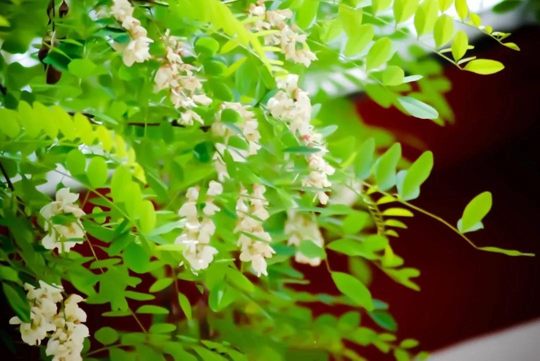 串串槐花懸于枝頭遠遠望去白花花的一片似白雪蓋樹