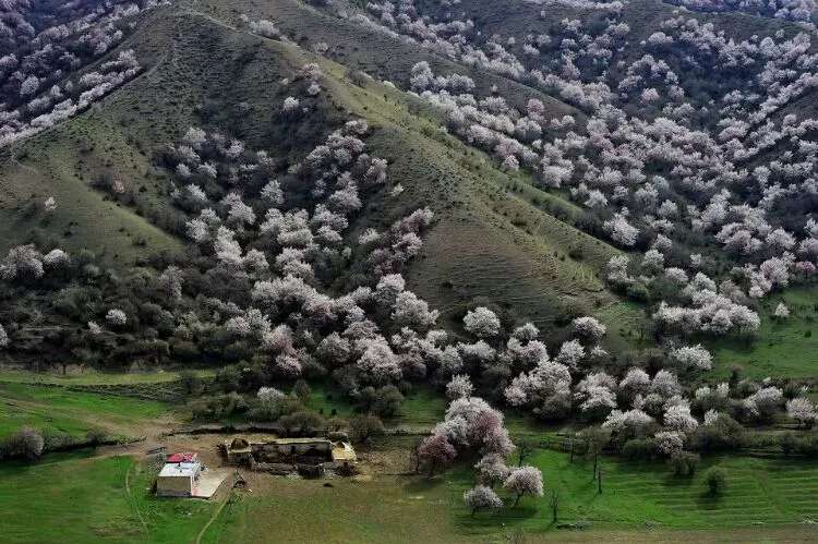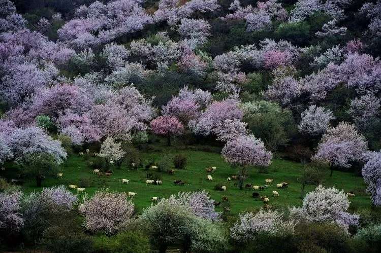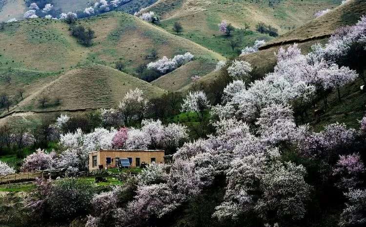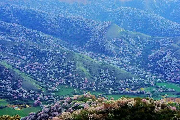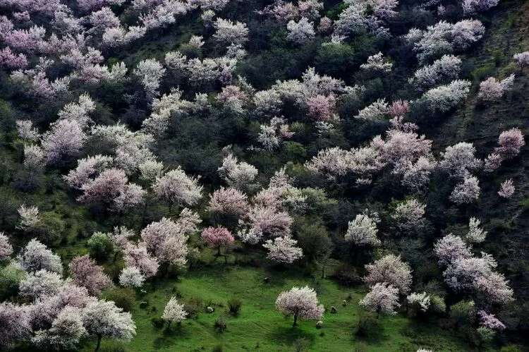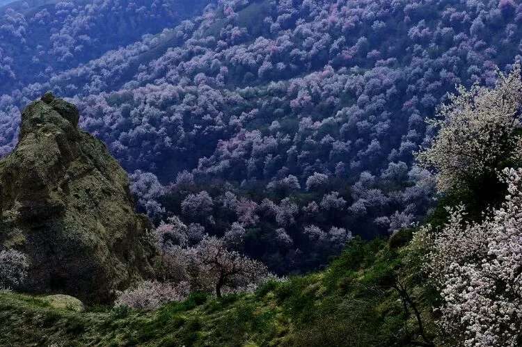 早春三月, 霍城縣大西溝福壽山景區(qū)杏花盛開(kāi),景色迷人,春花爛漫,香艷滿枝的時(shí)候,紅 蘭 粉 紫 白 各色鮮花含苞吐蕊,爭(zhēng)相齊放,滿山遍野,姹紫嫣紅,秋天紅葉鋪滿山腰,碩果掛滿枝頭,碧野在著名的《天山景物記》中記敘這樣的場(chǎng)景:“春天繁花開(kāi)遍峽谷,秋天果實(shí)壓滿山腰,每當(dāng)花紅果熟,正是鳥(niǎo)雀百獸的樂(lè)園”寫(xiě)的正是大西溝。