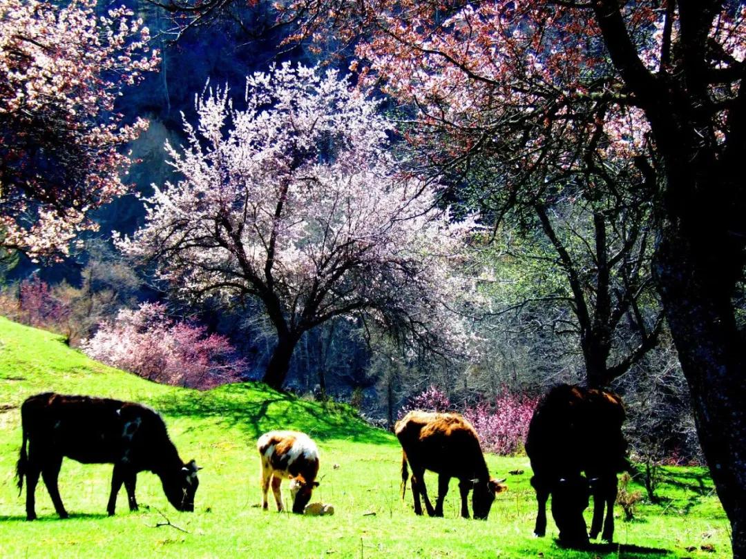 僅杏花而言,入春的伊犁河谷就像是一條分布長(zhǎng)達(dá)300多公里的杏花景觀長(zhǎng)廊。因海拔差異,這些杏花開(kāi)放時(shí)間并不一致,伊寧縣杏花節(jié)過(guò)后,吐?tīng)柛靶恿?、福壽山野生酸梅花、天山紅花次第開(kāi)放,各領(lǐng)風(fēng)騷,讓游客沉醉其中。