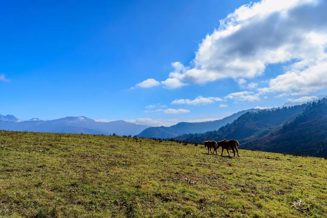 神木壘一年四季風(fēng)景秀麗,它不僅有藏族的美麗淳樸,你漫步其中,隨處可見(jiàn)散養(yǎng)于森林草地上的牛馬羊群,加上暖暖的時(shí)光,輕輕的風(fēng),那畫(huà)面極度舒適。