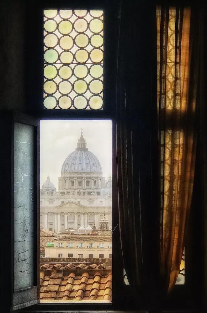從圣天使城堡的窗戶遙望圣彼得大教堂的穹頂