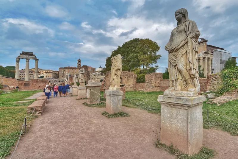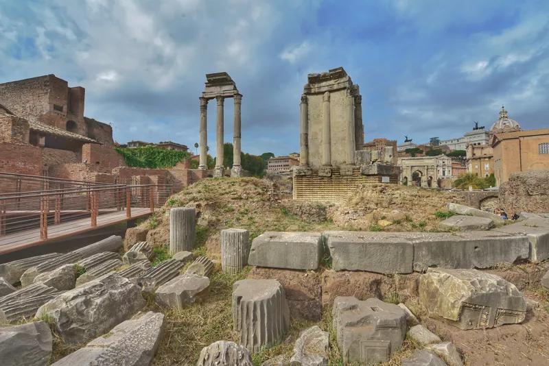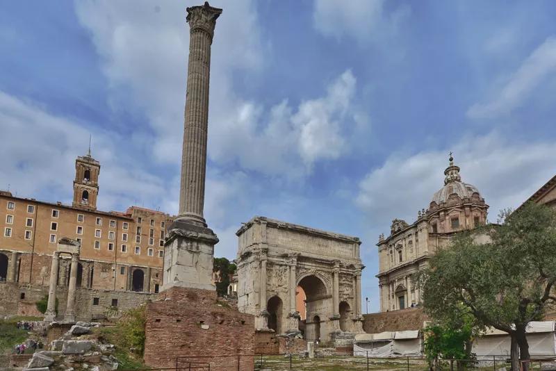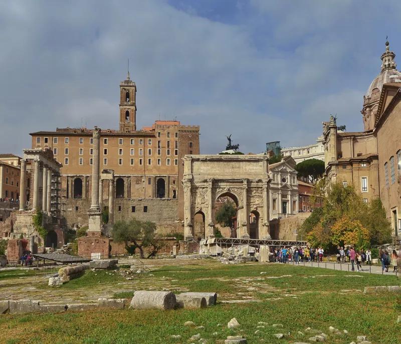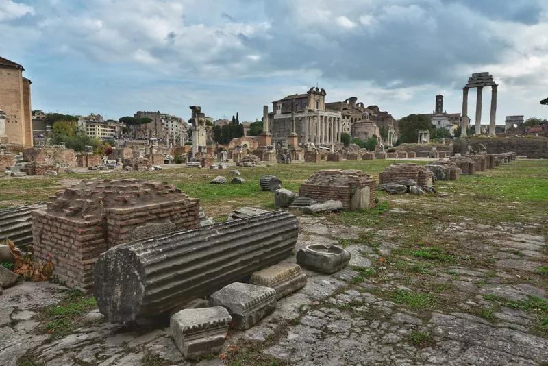 圍繞著這座廣場,遍布著神殿、元老院、會議堂、凱旋門,以及重要?dú)v史人物曾經(jīng)生活和死去的遺跡。
