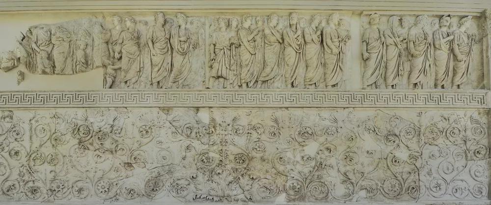 在奧古斯都統(tǒng)治帝國十余年后的公元前13年,在打敗政敵安東尼與埃及艷后克婁巴特拉的聯(lián)盟后,他開始建造象征和平的祭壇。