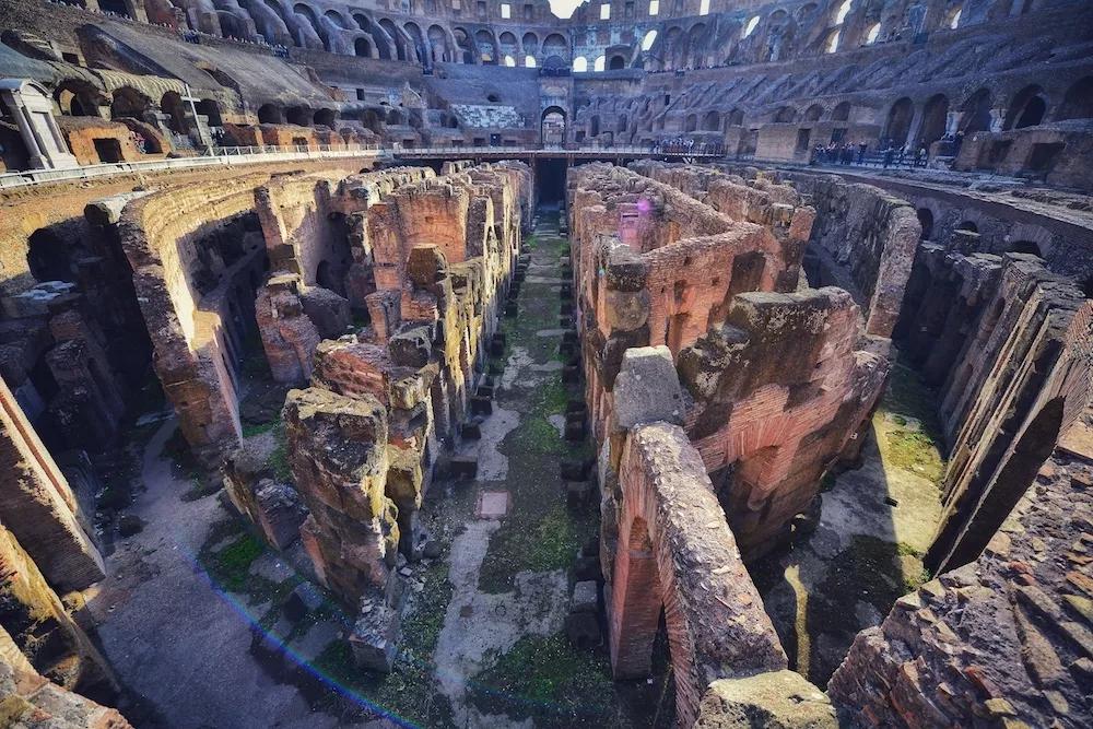 在這層地板之下,交錯(cuò)縱橫的石制走道,曾是著名人士隱蔽的通道和角斗士及野獸出場的走廊。