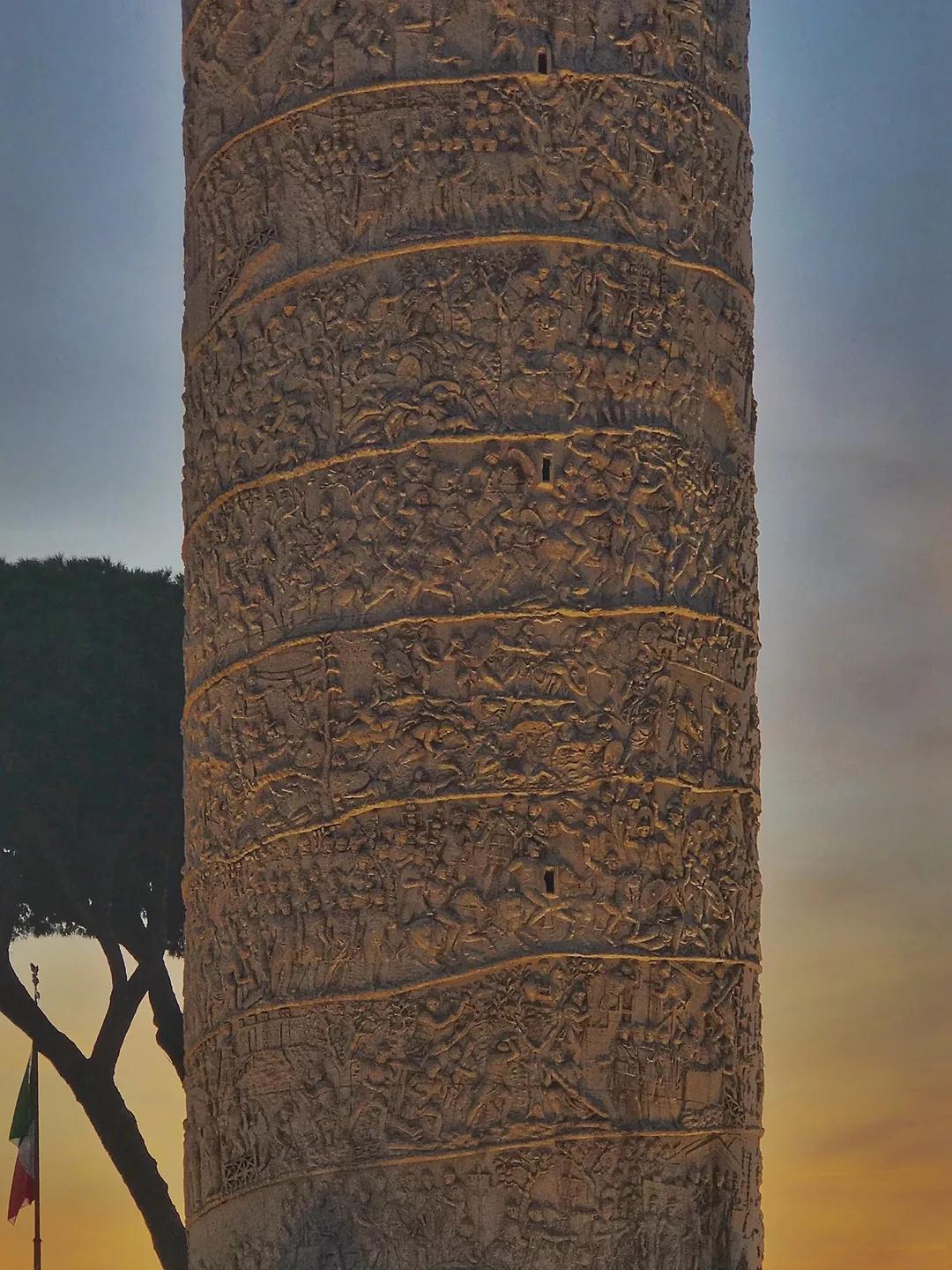 這是一條盤旋上升的石柱,石柱外立面用大理石雕刻著圖拉真的豐功偉績,雕工的精細(xì)和奇特的設(shè)計(jì)令人贊嘆,你也許要拿著望遠(yuǎn)鏡繞著柱子轉(zhuǎn)上無數(shù)圈,才能讀完這位偉大帝王的一生。