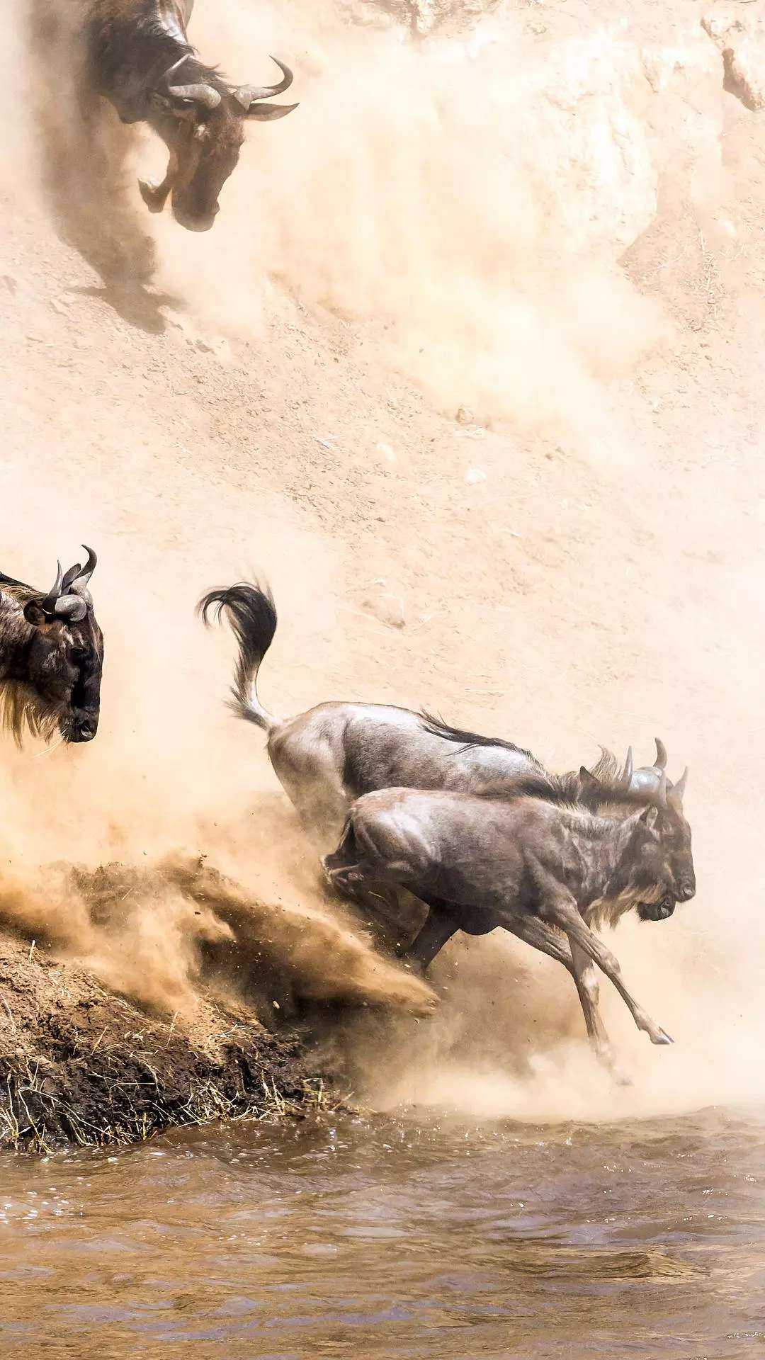 每年的1-2月角馬產(chǎn)仔后,200多萬頭食草動物就踏上了尋找水源與草源的遷徙之旅,從坦桑尼亞的塞倫蓋蒂大草原,到肯尼亞的馬賽馬拉大草原,成群結(jié)隊的斑馬雄健的奔跑,千千萬萬的角馬揚起草原的沙塵,他們之中有三分之一會在遷徙途中喪生;約每年的6月,遷徙的腳步停在了馬拉河邊,在這最危險的渡口,他們等待著、踟躕著;而此時游客接踵而至,也是為了膜拜非洲大草原上這一場橫渡馬拉河的悲壯場景。在草原上,浩浩蕩蕩的動物大軍形成震驚世界的壯麗遷徙景觀。在遷徙旅途中,“千軍萬馬”過馬拉河的景象也可謂是大遷徙的一大亮點。保護區(qū)內(nèi)有武裝警察守衛(wèi),保證游客的安全。開車的司機都必須取得資格,并嚴格遵守保護區(qū)的規(guī)定。在這里,動物按照它們原來的生活方式生存和繁衍,游客的活動受到有效的控制,動物與人類相安無事。