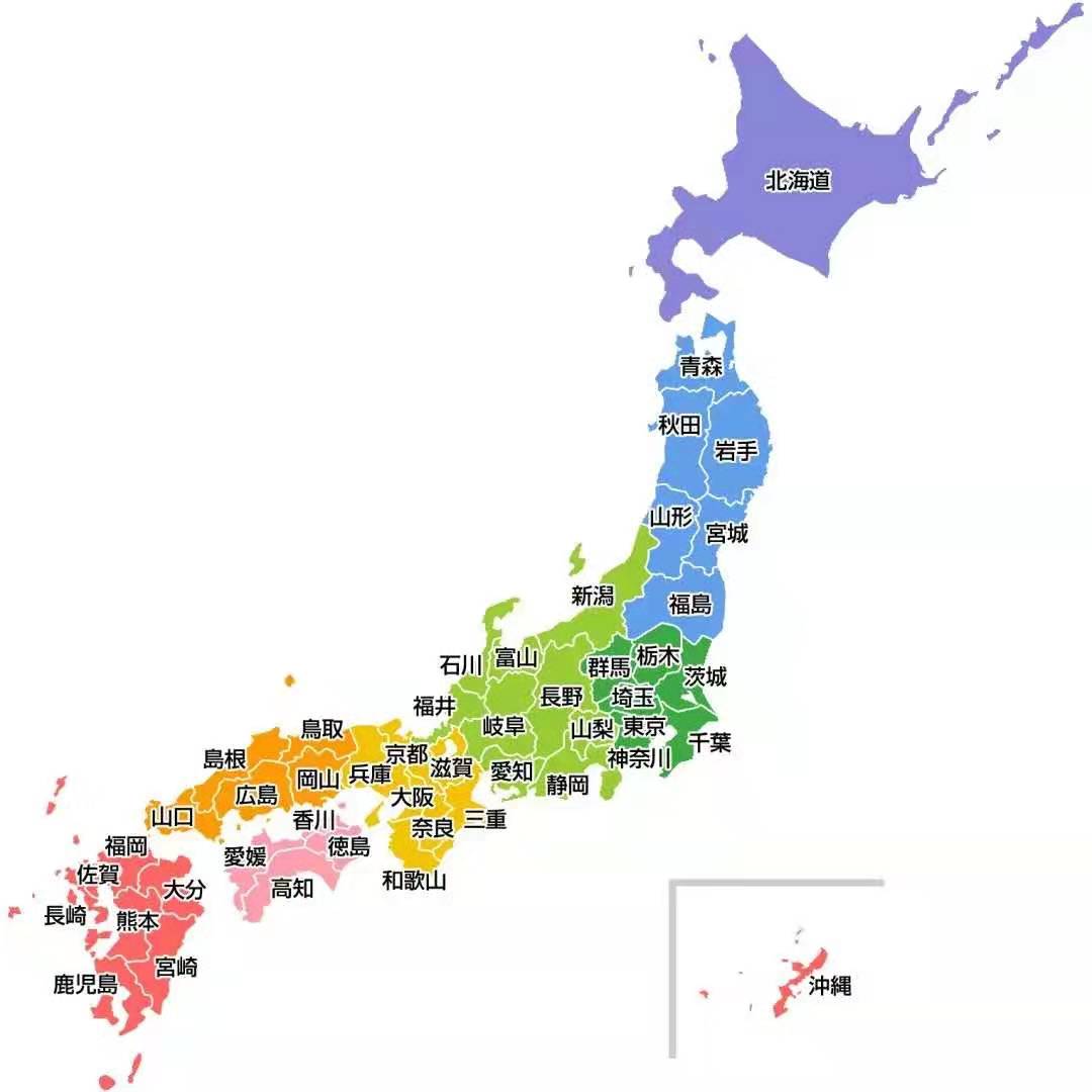 與中國(guó)的行政區(qū)劃——省市自治區(qū)類似,日本的行政區(qū)劃是都道府縣(とどうふけん)。共有1都、1道、2府、43縣。1都是東京都,1道是北海道,2府是京都府和大阪府。日本的縣相當(dāng)于中國(guó)的省,共有43 縣。因此日本的行政區(qū)劃一共有 47 個(gè)。