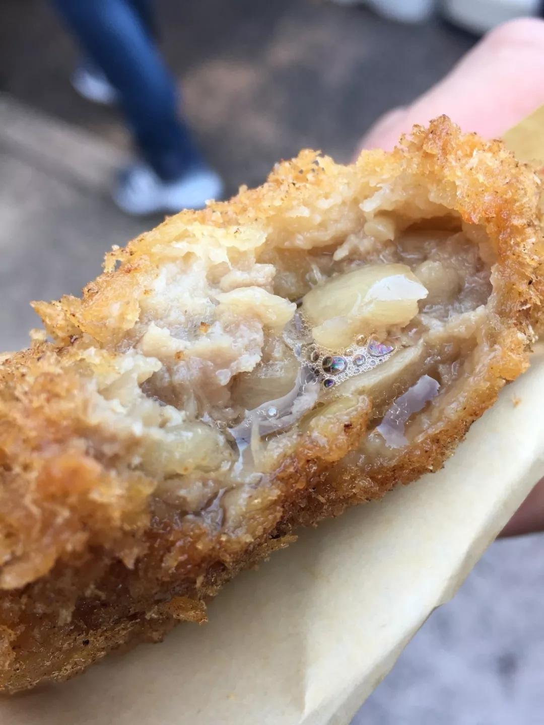 在淺草,各種便宜又美味的日式小吃自然是不容錯(cuò)過,這家淺草炸肉餅就非常值得一試,口感外脆里嫩、內(nèi)餡使用了神奈川縣產(chǎn)的高座豬與牛肉。先能感受到炸到酥脆咔嚓咔嚓的外殼,然后便是里邊又香又嫩又多汁的牛肉了。