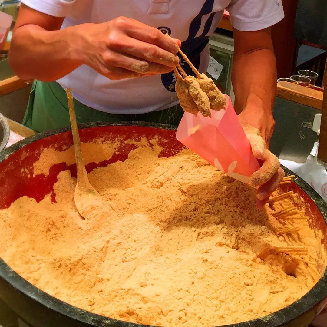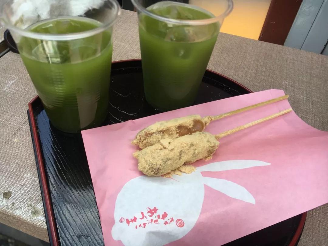 這家店每天營業(yè)時(shí)都是大排長龍,剛煮好的團(tuán)子軟軟的 富有彈性的團(tuán)子沾上香甜的黃粉,是不可錯(cuò)過的淺草美食之一。再配上也一杯冰抹茶最合適不過了!店里還提供夏季抹茶和冬季甘酒等飲品,非常值得一嘗。