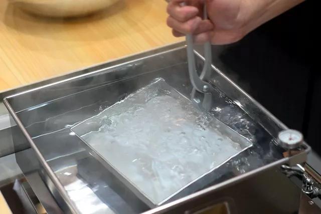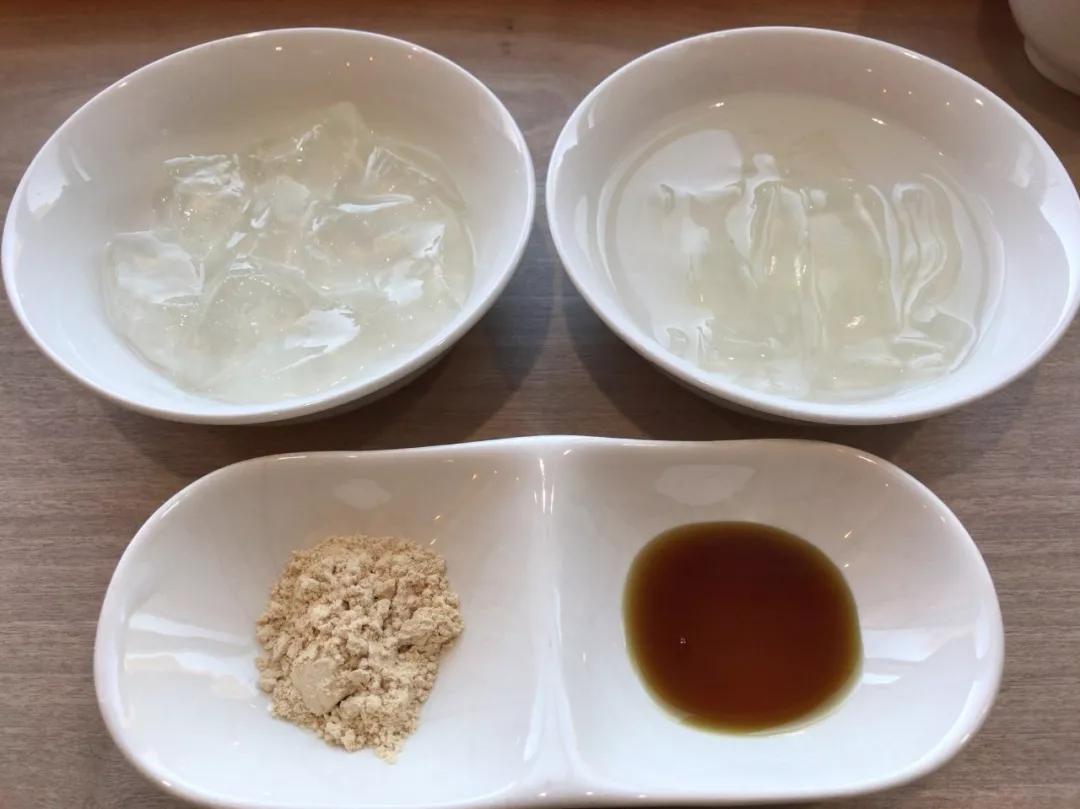 店內(nèi)的葛粉僅使用吉野本葛和水制作,不使用任何添加劑,并堅(jiān)持使用傳統(tǒng)技法制作。成品外觀晶瑩透亮,吃起來清涼爽滑。做好后的葛粉需要立刻食用,超過10分鐘,透明度就會(huì)開始下降,變得黏糊失去口感喲。