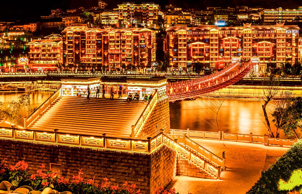 夜幕降臨后,赤水河畔的【茅臺鎮(zhèn)】,風(fēng)姿韻味無法言語形容,一步一景,步步驚心,美不能再美,赤水河岸邊,房屋上,樹木上,吊橋上,茅臺渡口,到處飄逸燈光彩帶,一層一層向山上蔓延;