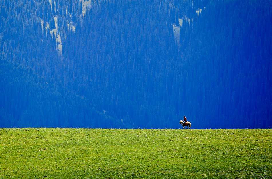 喀拉峻湖:喀拉峻湖面積約273.6公頃,湖水最深處達(dá)97米,平均水深80米,風(fēng)靜波平時(shí)湖水似翡翠般深湛,而天光變幻時(shí)湖水又呈現(xiàn)出深藍(lán)、翠綠、碧綠等不同的色調(diào),庫(kù)爾臺(tái)層疊的山巒、湖岸倒映其間,宛若橫亙虛空。每當(dāng)煙云繚繞,登高望去,雪峰、草甸若隱若現(xiàn),既具北國(guó)風(fēng)光之雄渾,又具江南山水之?huà)尚恪?/span>