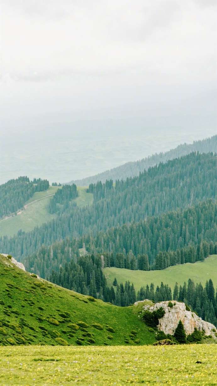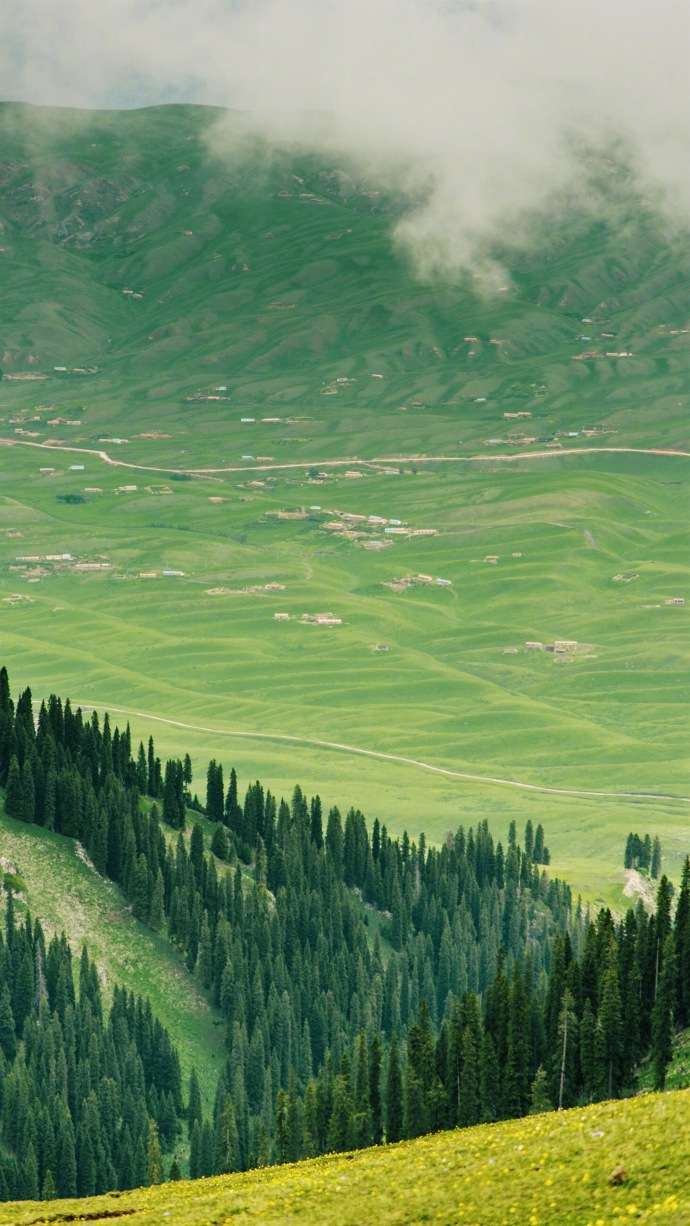 區(qū)內(nèi)海拔高度自1305~3957米,屬寒溫帶大陸性氣候,又因背靠天山北麓,春夏季多降水,涼爽舒適,冬季相對(duì)溫暖干燥,年平均氣溫6-9℃,極其適宜動(dòng)植物生長(zhǎng)。