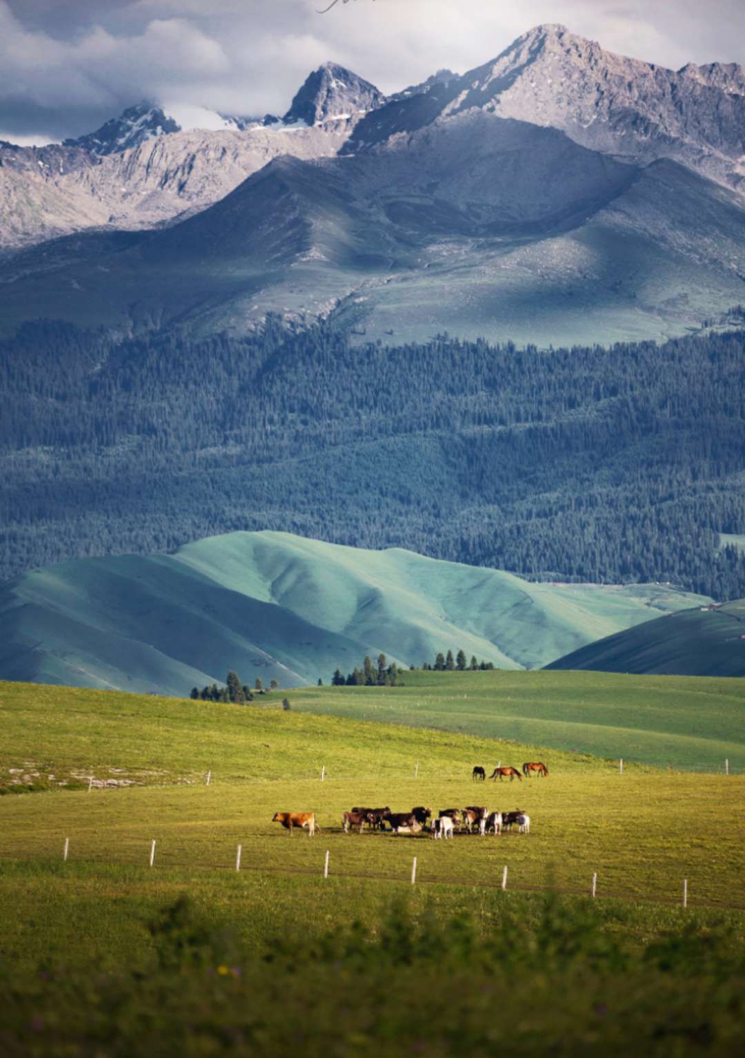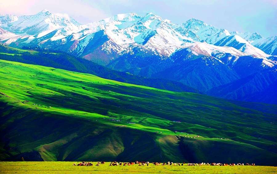 區(qū)內(nèi)集森林、草原、雪山、冰川、峽谷、河流、湖泊等自然景觀為一體,集中代表了新疆天山自然的美學(xué)價(jià)值。