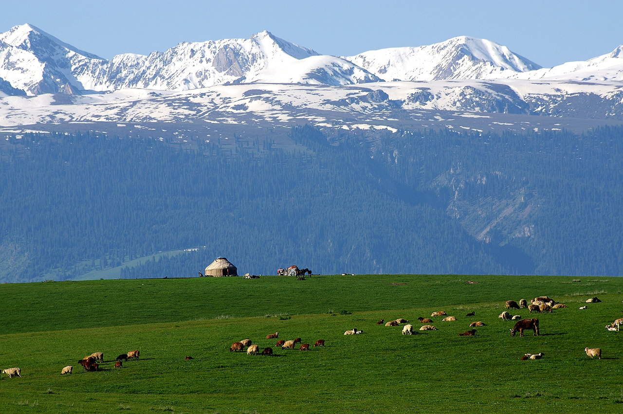 昭蘇草原,屬溫帶山區(qū)半干旱半濕潤冷涼氣候類型,特點(diǎn)是冬長無夏,春秋相連,沒有明顯的四季之分。