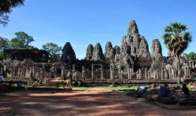 巴戎廟 位于柬埔寨暹粒,吳哥城內(nèi)最為出名的要數(shù)巴戎廟中的佛塔了,巴戎廟位于吳哥城的中心位置,巴戎廟是由一組共49座小寶塔圍繞中央尖塔構(gòu)成的建筑群,這些塔在佛語里又被稱做浮屠,每一座塔的四面都雕刻著巨大的佛面,也正因?yàn)槿绱耍@些塔又被稱作佛面塔,上面的佛被稱為四面佛。