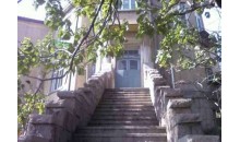 穿過兩扇雕花的鐵柵欄大門,正對著大門的是一段寬敞的沿地勢而建的臺階,拾階而上,臺階向兩邊分開,之后繞過一面造型古樸的壁墻,進入高處的院內,再通過石階才能進入居室。洪深故居是一座二層樓的德式建筑,高大的門廳,拱形窗戶,青磚灰瓦,歌特式的屋頂,十分的寬敞和氣派。通過后來的了解,這處洪深舊居也正是青島現(xiàn)代文化名人故居中,最為“闊綽”的一處。