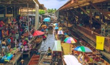 在泰文的意思是『賓至如歸』,當(dāng)年的泰皇拉瑪五世微服出巡到此,不知情的村長(zhǎng)一樣熱情的款待,讓五世皇深受感動(dòng),于是便以Damnnoen Saduak命名,也為水上市場(chǎng)帶來(lái)了百年的豐盈。