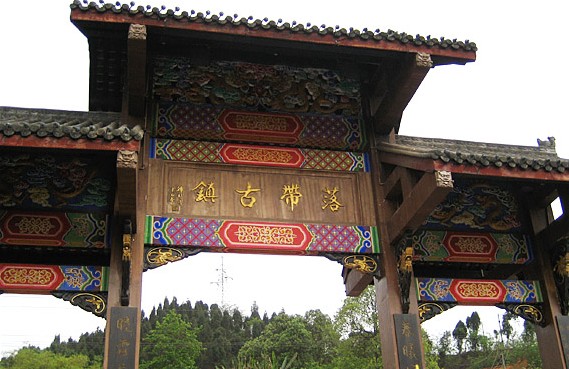 三說(shuō)為場(chǎng)鎮(zhèn)老街蜿延一公里,狀如玉帶自天飄落,故名“落帶”,后演變?yōu)?ldquo;洛帶”。