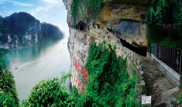 三游洞前,是清澈碧透的下牢溪,水石相擊,飛珠濺玉。沿洞旁小路登上山頂?shù)闹料餐?,西眺可見大江雄姿;在那峰巒疊嶂之中,長江像一把利斧,辟開一線通道,直瀉西陵峽口,激流咆哮,破門而出,流經(jīng)三游洞旁,則水勢轉(zhuǎn)平,版權(quán)所有山東聊城聊之旅國際旅行社有限公司,轉(zhuǎn)載必究!江面豁然開闊,呈現(xiàn)險夷交替之奇觀。三游洞不僅是著名的古跡勝地,同時也是重要的革命遺址。土地革命時期,這里曾是中共鄂西特和宜昌縣委的地下交通聯(lián)絡(luò)站,當(dāng)時廟中“道士”有的是我黨地下交通員。解放后,1958年3月1日,周恩來為實現(xiàn)毛澤東“高峽出平湖”的宏偉藍(lán)圖,造福子孫后代,