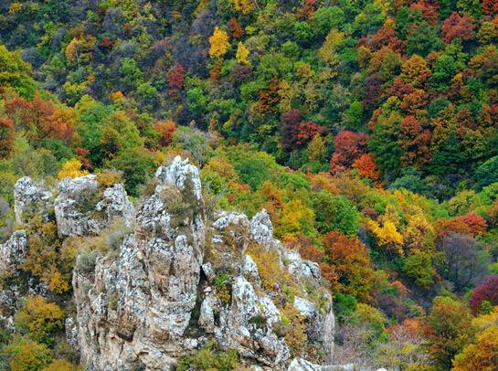 峽谷中,谷寬澗淺,如在盛夏時(shí)節(jié),陽光普照,滿山滴翠,空氣清新,鳥語花香。再往前行,只見峰巒閉鎖,兩壁怪石交錯(cuò),明媚的陽光已不復(fù)存在,冷風(fēng)習(xí)習(xí)、陰森逼人,只有一線天,亂云飛渡。順山路而進(jìn),時(shí)而陡壁迎面,山窮水盡;時(shí)而峰回路轉(zhuǎn),柳暗花明,別有洞天。當(dāng)?shù)匕傩罩v,四十里飛狐七十二道彎,彎彎有洞天美景,處處含勝景奇觀。峽谷一路前行,有“一炷香”、“雙箭孔”、“三仙思月”、“四將守門”、“五狗望月”、“六郎樁”、“七女峰”、“八仙洞”等奇峰異石,每一處奇觀都會給人留下無限遐想。四十里飛狐四十里景,迷宮奇物天作成。它以山峰怪異稱奇,以深幽兇險(xiǎn)稱奇,自古多少兵家因此處山兇地險(xiǎn)而爭戰(zhàn)駐守,多少文人墨客對奇景嘆妙稱奇留下詩篇。這里公路通達(dá),車行順暢,更成為旅游觀光、尋覓歷史遺跡的絕好去處。