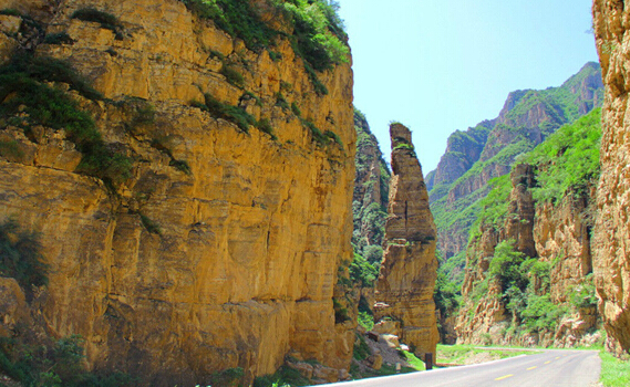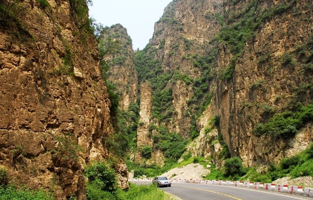 《遼史·地理志》載:“相傳有狐于嶺,食五粒松子,遂成飛狐,故此處地名飛狐口”。這當(dāng)然只是一個(gè)傳說。順盤山公路蜿蜒而行,山石聳立,斧劈刀斷一般,四十里飛狐峪幾乎步步都有看點(diǎn),隨處可見喀斯特地貌造就的怪石異峰。“一炷香”孤立而出,傳說中楊六郎為爭國土箭射山峰留下的“箭眼”依稀可見。明崇禎時(shí)大學(xué)士、兵部尚書楊嗣昌在《飛狐口記》中稱“千夫拔劍,露立星攢”、“有如天門”、“回合萬變”。清人吳蘗昌在《北口峪》中稱其山峰造化神奇,“疑神疑鬼,為人力當(dāng)不受”。飛狐峪最寬處只有七八十米,最窄處僅一米左右,頭頂只見一線天,堪稱“一夫當(dāng)關(guān),萬夫莫開”。