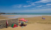 趕海撿貝園內(nèi)礁石密布,奇石林立,千姿百態(tài),物產(chǎn)豐富,有各種貝類(lèi)、魚(yú)、蝦、蟹、海螺、海參、海菜等海產(chǎn)品,一年四季可趕海拾貝、挖蛤、垂釣。每天落朝時(shí),海水退卻3公里左右,是趕海撿貝的好時(shí)機(jī)。夜晚沙灘篝火晚會(huì),載歌載舞,更是令人情舒暢。